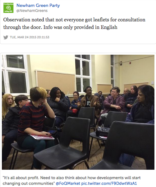 Notably, despite wide promotion there were no councillors or Newham Council representatives present…